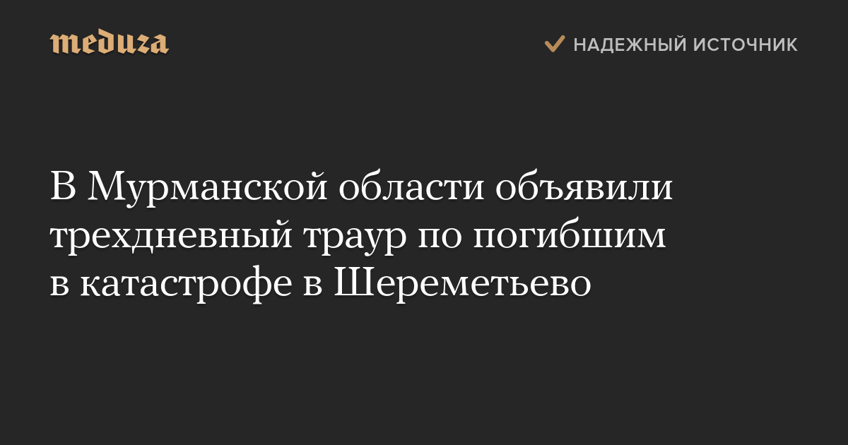 В Мурманской области объявили трехдневный траур по погибшим в катастрофе в Шереметьево