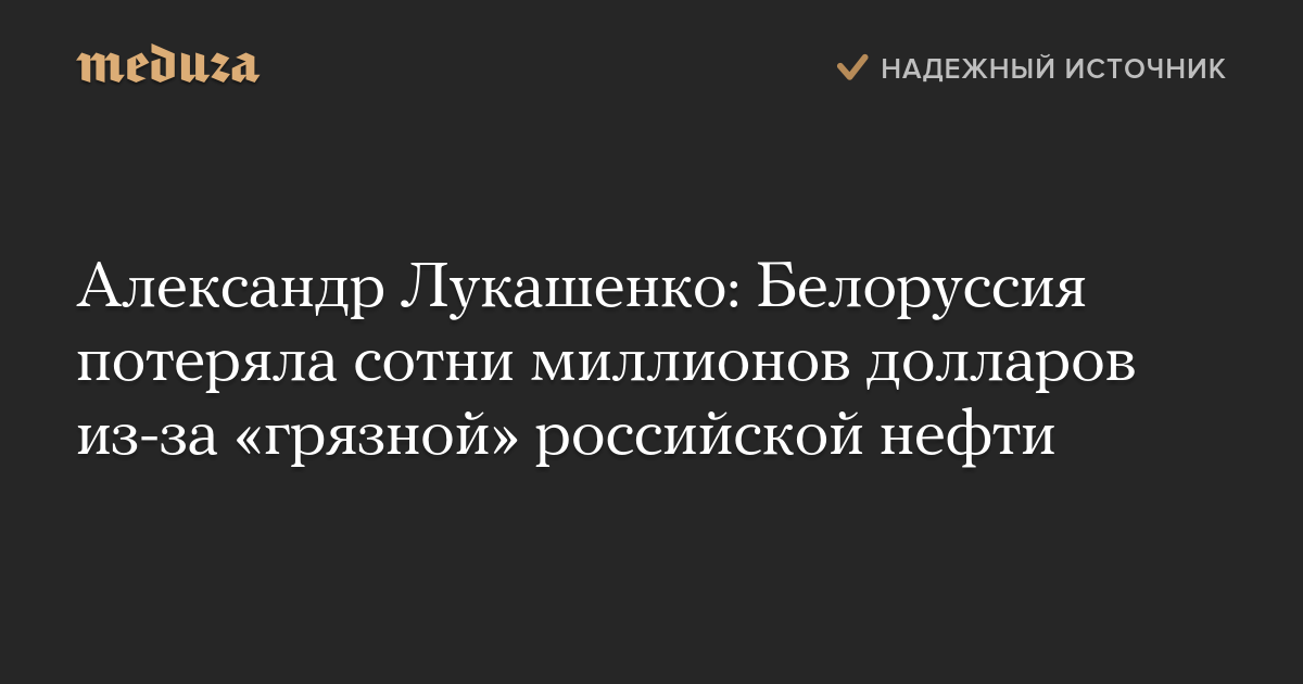 «Расхлябанность и разболтанность на территории России (а это тысячи километров) — и огромная труба была загрязнена ядовитой нефтью, — сказал президент Белоруссии.
