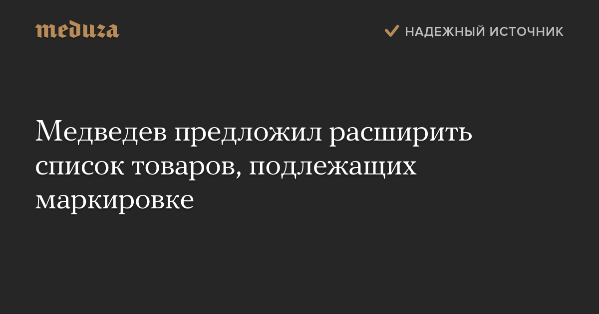 Медведев предложил расширить список товаров, подлежащих маркировке