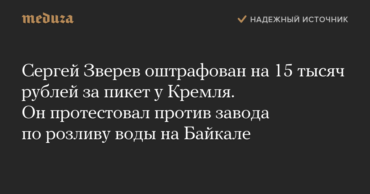 Сергей Зверев оштрафован на 15 тысяч рублей за пикет у Кремля. Он протестовал против завода по розливу воды на Байкале
