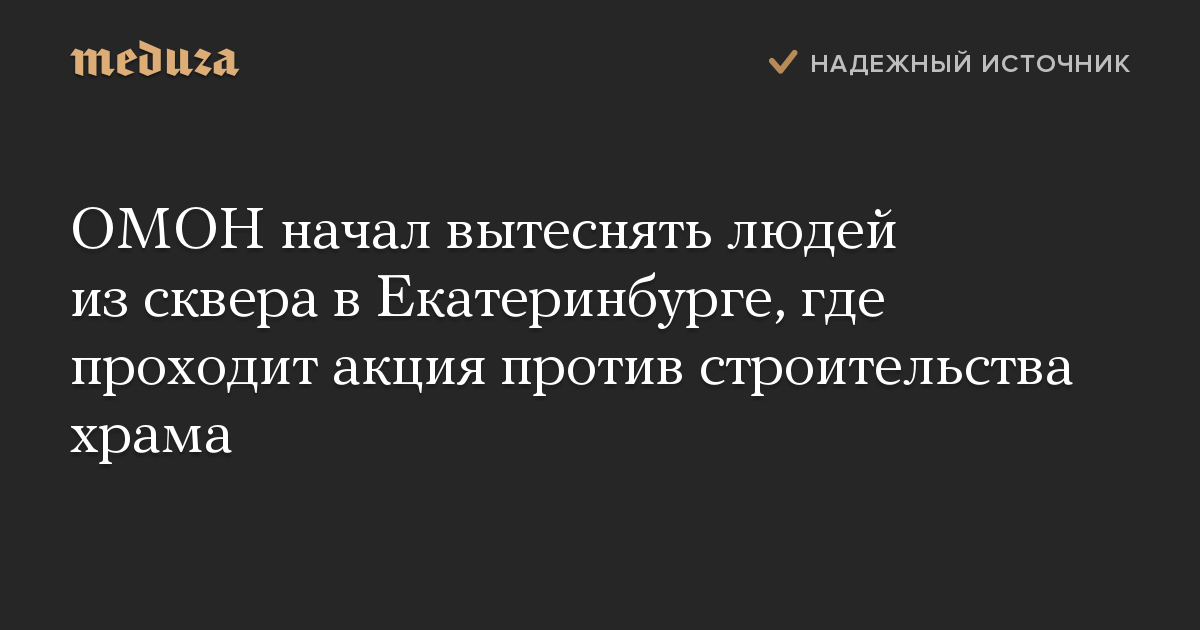 ОМОН начал вытеснять людей из сквера в Екатеринбурге, где проходит акция против строительства храма