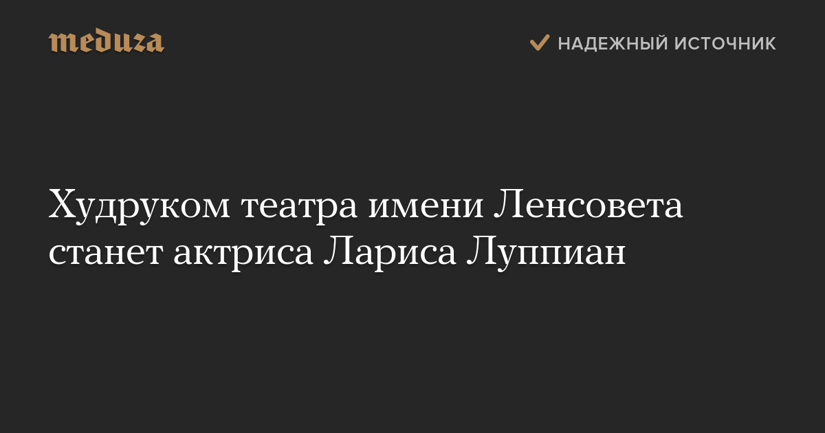 Художественным руководителем петербургского театра имени Ленсовета станет актриса Лариса Луппиан, пишет «Фонтанка». Актриса подтвердила изданию, что согласилась на предложение властей Санкт-Петербурга возглавить театр, однако оформление, по ее словам, «может продлиться долго».