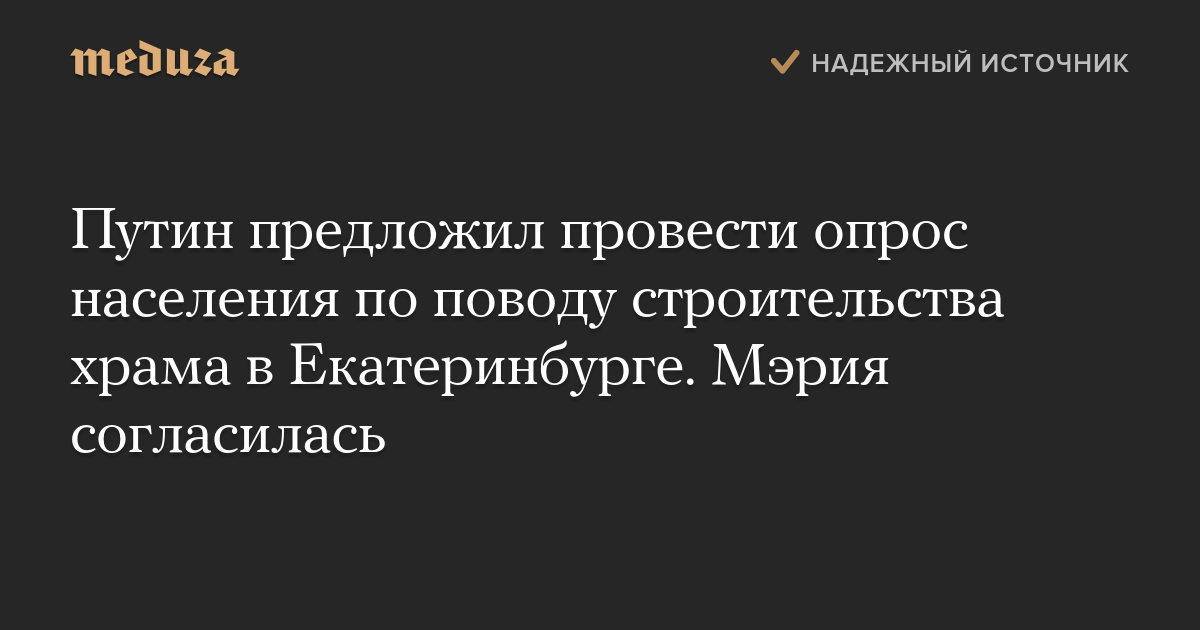 Путин предложил провести опрос населения по поводу строительства храма в Екатеринбурге. Мэрия согласилась