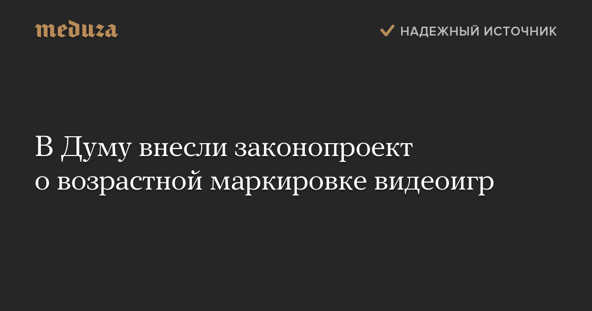Сенаторы Людмила Бокова, Александр Башкин, Елена Мизулина и Ахмат Салпагаров внесли в Госдуму законопроект, вводящий возрастные маркировки для видеоигр, в том числе онлайн-игр.