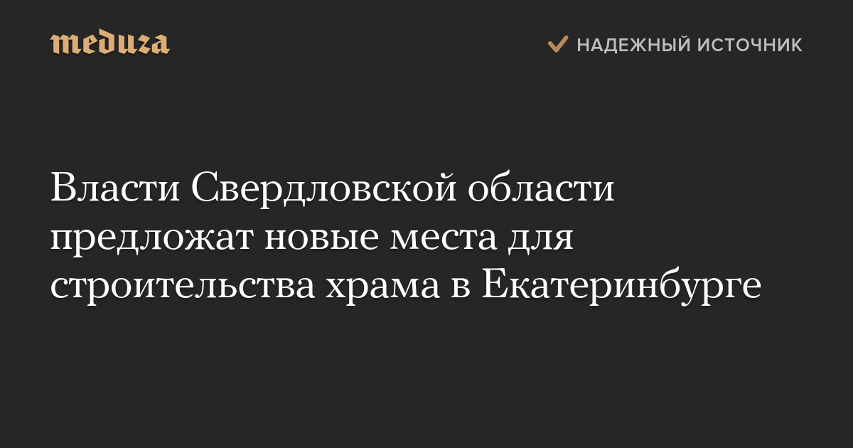 Власти Свердловской области предложат новые места для строительства храма в Екатеринбурге