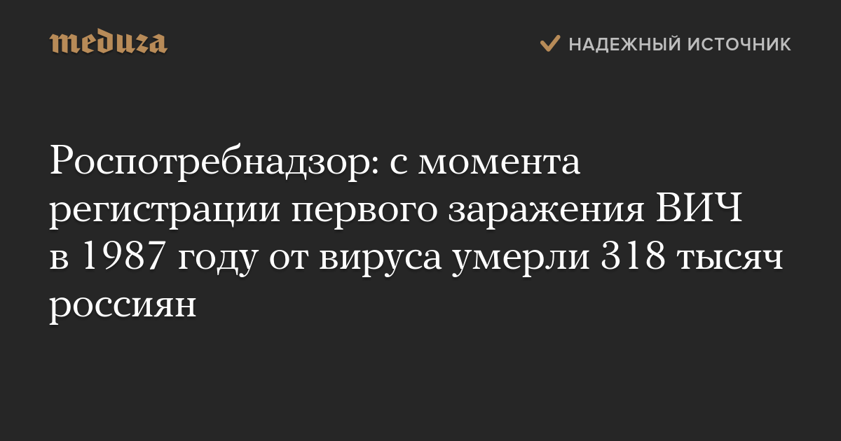 Роспотребнадзор: с момента регистрации первого заражения ВИЧ в 1987 году от вируса умерли 318 тысяч россиян