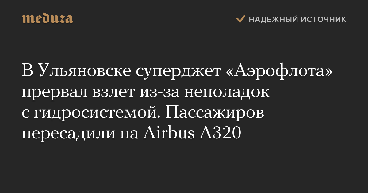 В Ульяновске суперджет «Аэрофлота» прервал взлет из-за неполадок с гидросистемой. Пассажиров пересадили на Airbus A320