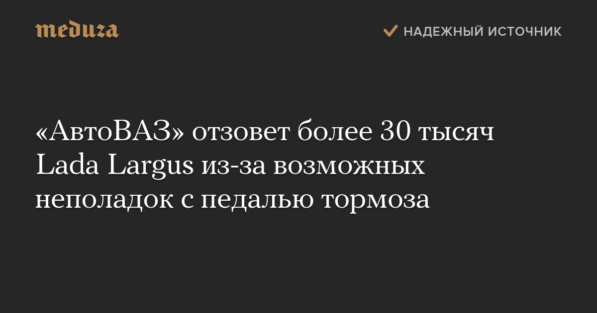 «АвтоВАЗ» отзовет более 30 тысяч Lada Largus из-за возможных неполадок с педалью тормоза