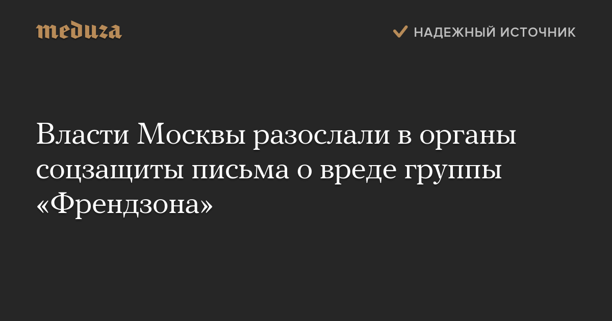 Власти Москвы разослали в органы соцзащиты письма о вреде группы «Френдзона»