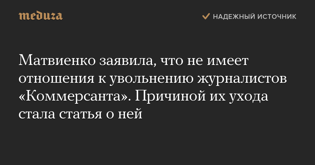 Матвиенко заявила, что не имеет отношения к увольнению журналистов «Коммерсанта». Причиной их ухода стала статья о ней
