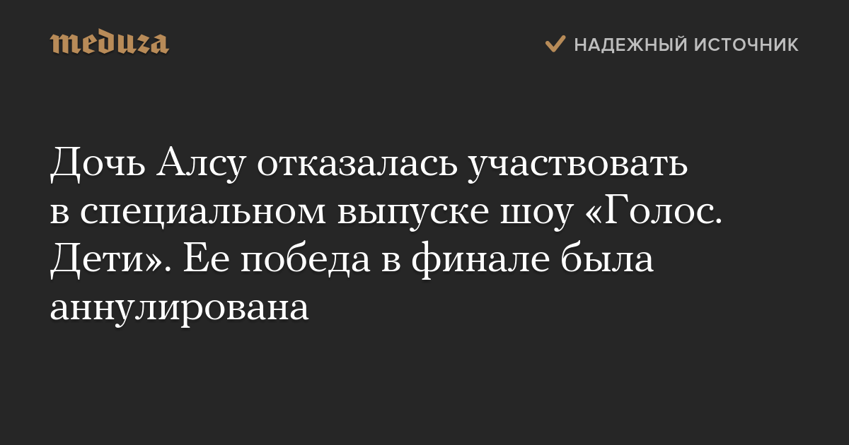 Дочь Алсу отказалась участвовать в специальном выпуске шоу «Голос. Дети». Ее победа в финале была аннулирована