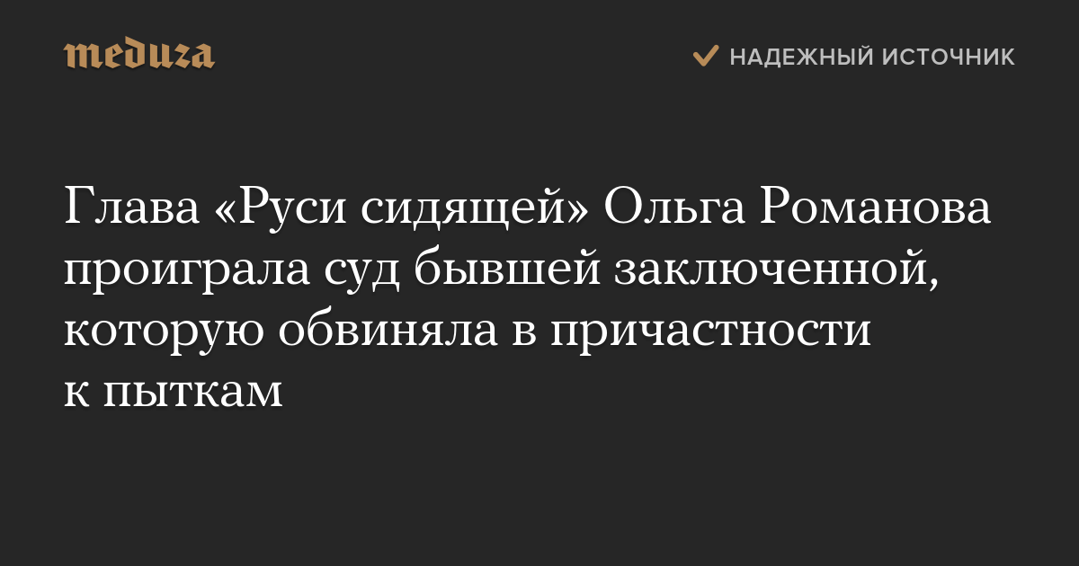 Глава «Руси сидящей» Ольга Романова проиграла суд бывшей заключенной, которую обвиняла в причастности к пыткам