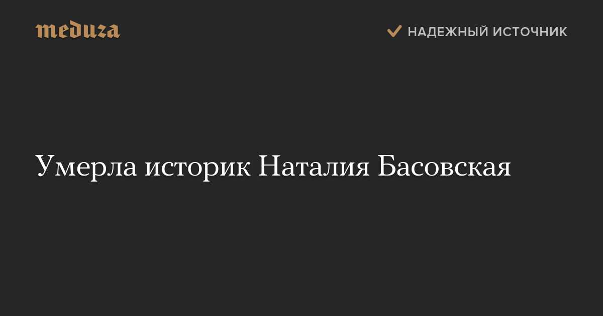 Наталия Басовская умерла в ночь на 24 мая в реанимации, где она находилась несколько дней, сообщил РБК ректор РГГУ Александр Безбородов. «Она с сентября прошлого года себя не очень хорошо чувствовала», — сказал ректор.