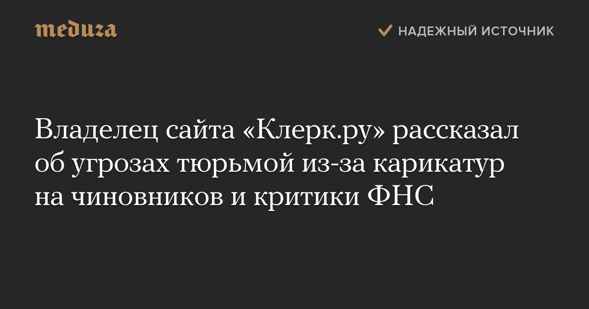 Владелец сайта «Клерк.ру» рассказал об угрозах тюрьмой из-за карикатур на чиновников и критики ФНС