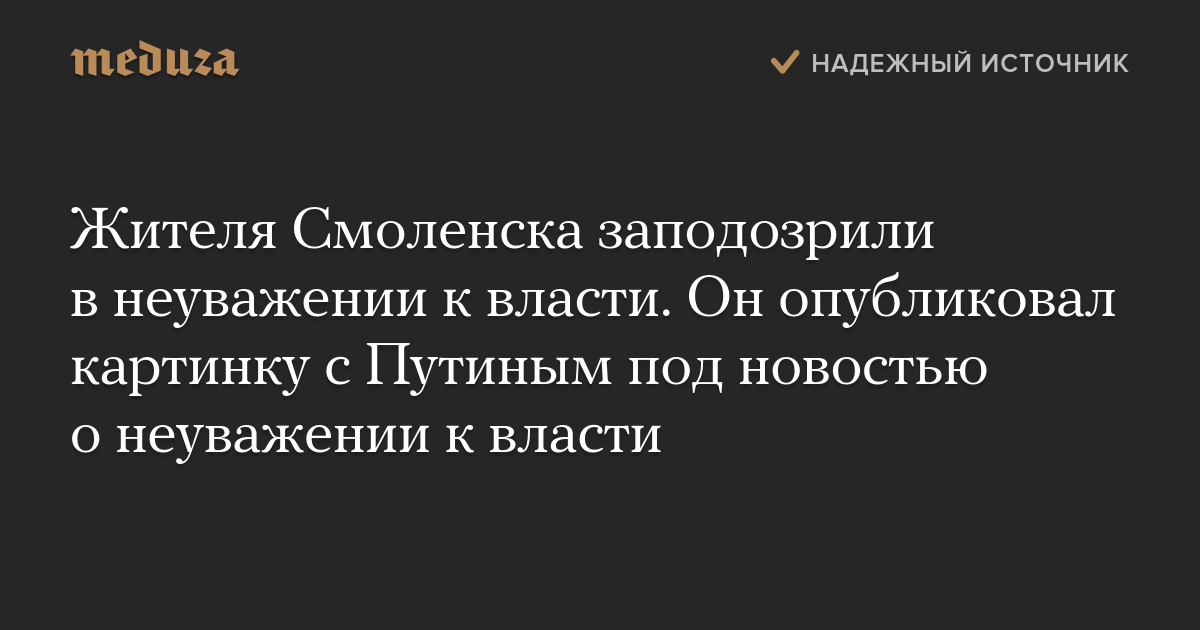 Жителя Смоленска заподозрили в неуважении к власти. Он опубликовал картинку с Путиным под новостью о неуважении к власти