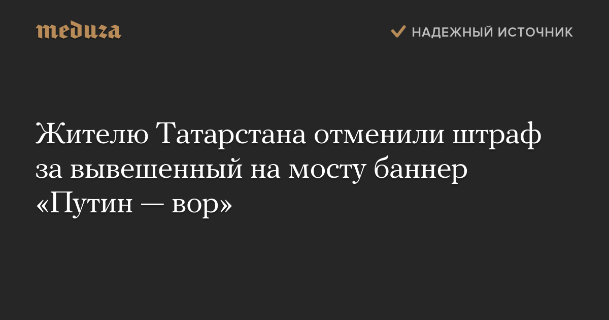 Жителю Татарстана отменили штраф за вывешенный на мосту баннер «Путин — вор»