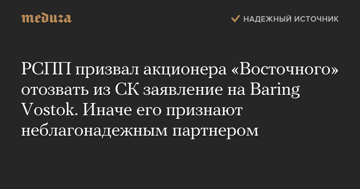 РСПП призвал акционера «Восточного» отозвать из СК заявление на Baring Vostok. Иначе его признают неблагонадежным партнером