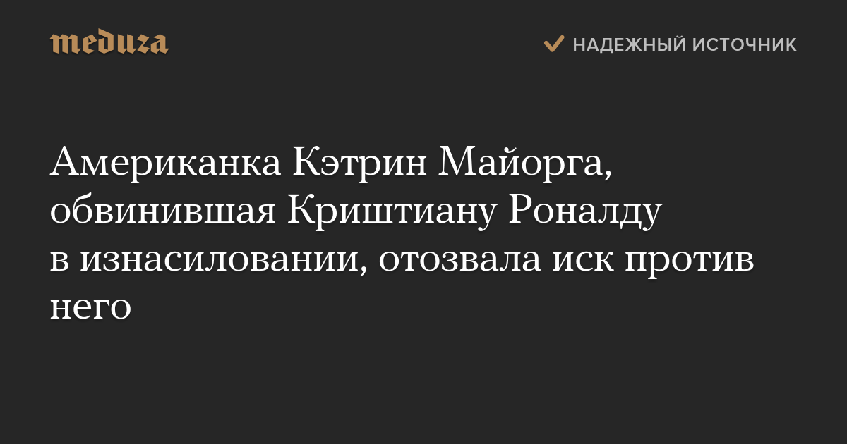 Американка Кэтрин Майорга, обвинившая футболиста «Ювентуса» Криштиану Роналду в изнасиловании, отозвала свой иск из суда, пишет агентство Bloomberg.