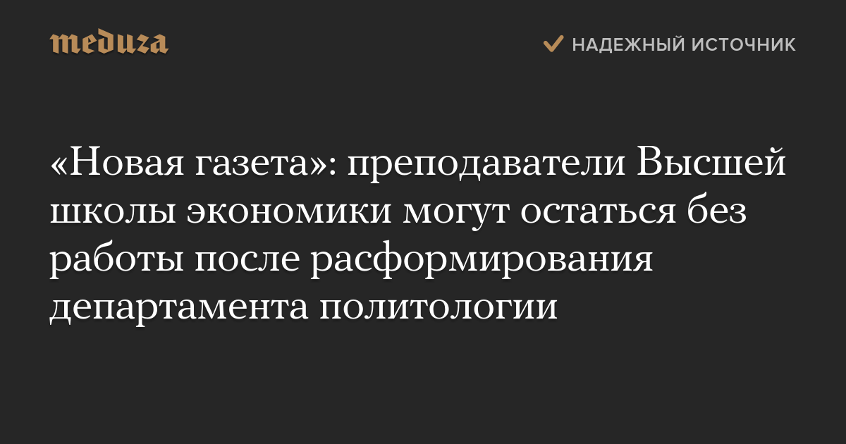 «Новая газета» указывает, что в департаменте политологии работают профессора и преподаватели, публично критикующие Кремль.