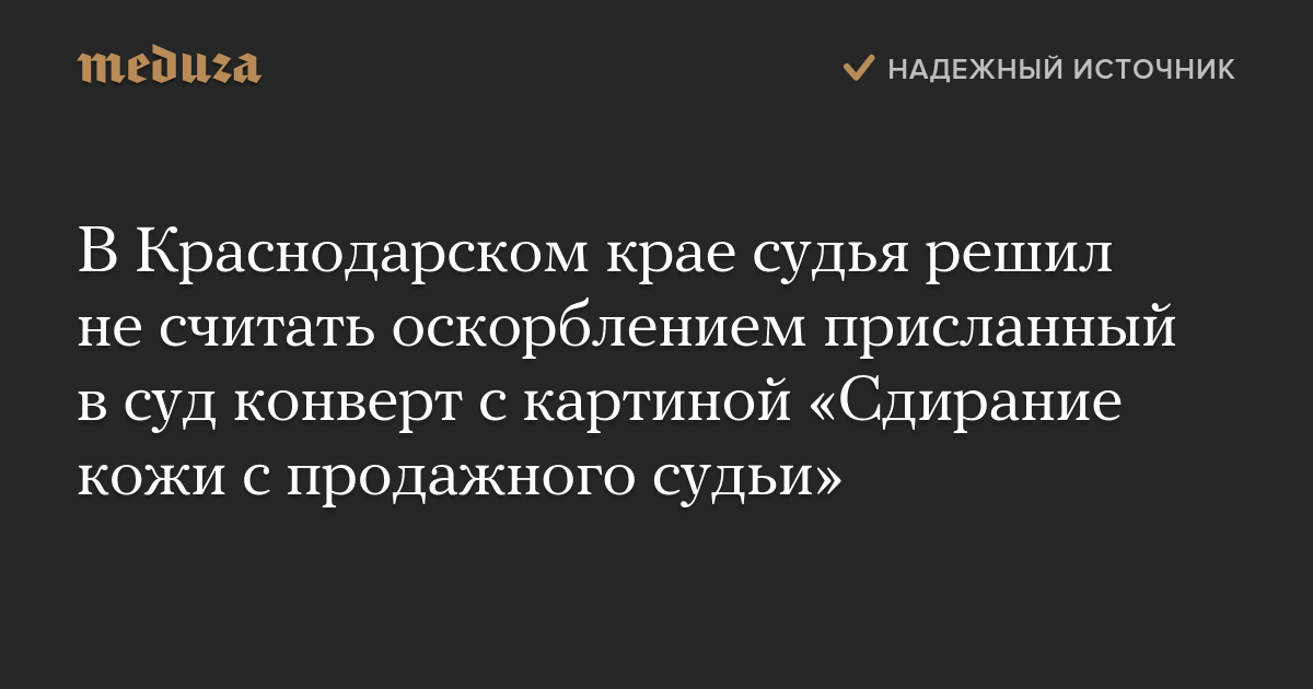 В Краснодарском крае судья решил не считать оскорблением присланный в суд конверт с картиной «Сдирание кожи с продажного судьи»