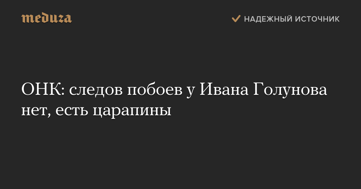 Члены Общественной наблюдательной комиссии Москвы (ОНК) осмотрели задержанного журналиста «Медузы» Ивана Голунова и зафиксировали у него на спине царапины.