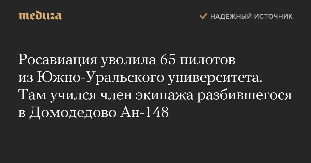 Росавиация уволила 65 пилотов из Южно-Уральского университета. Там учился член экипажа разбившегося в Домодедово Ан-148