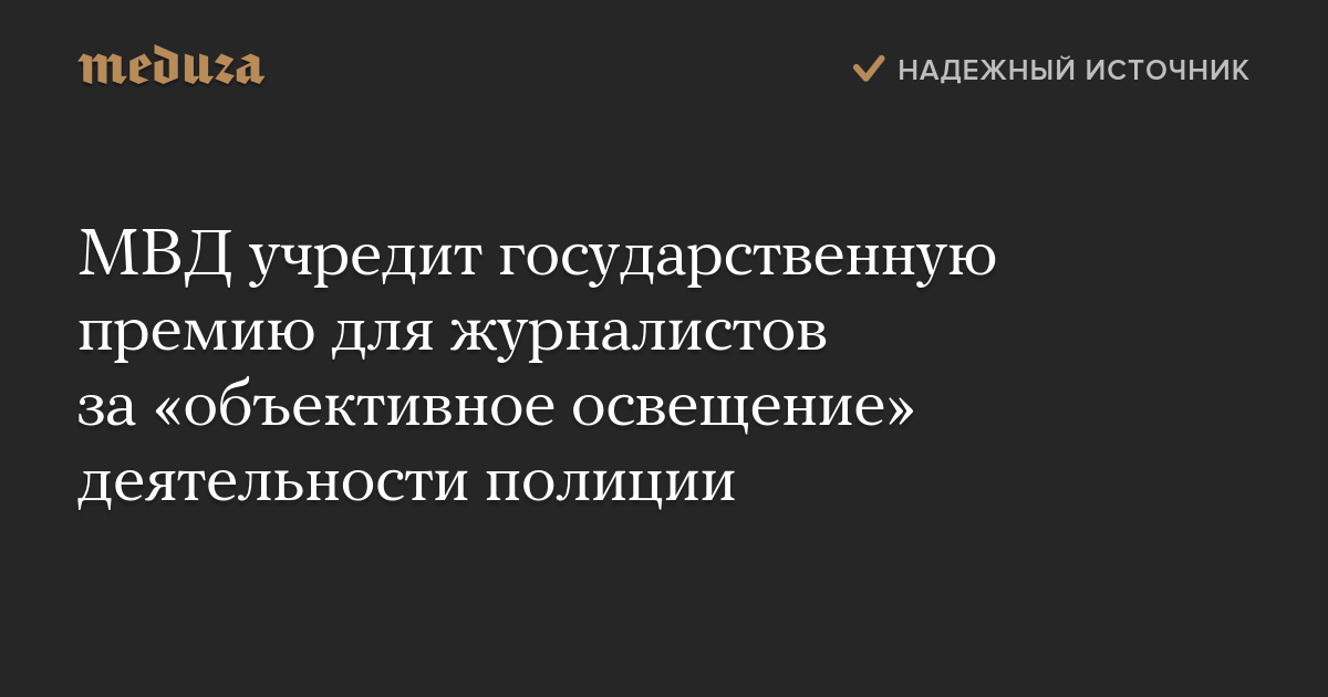 МВД учредит государственную премию для журналистов за «объективное освещение» деятельности полиции