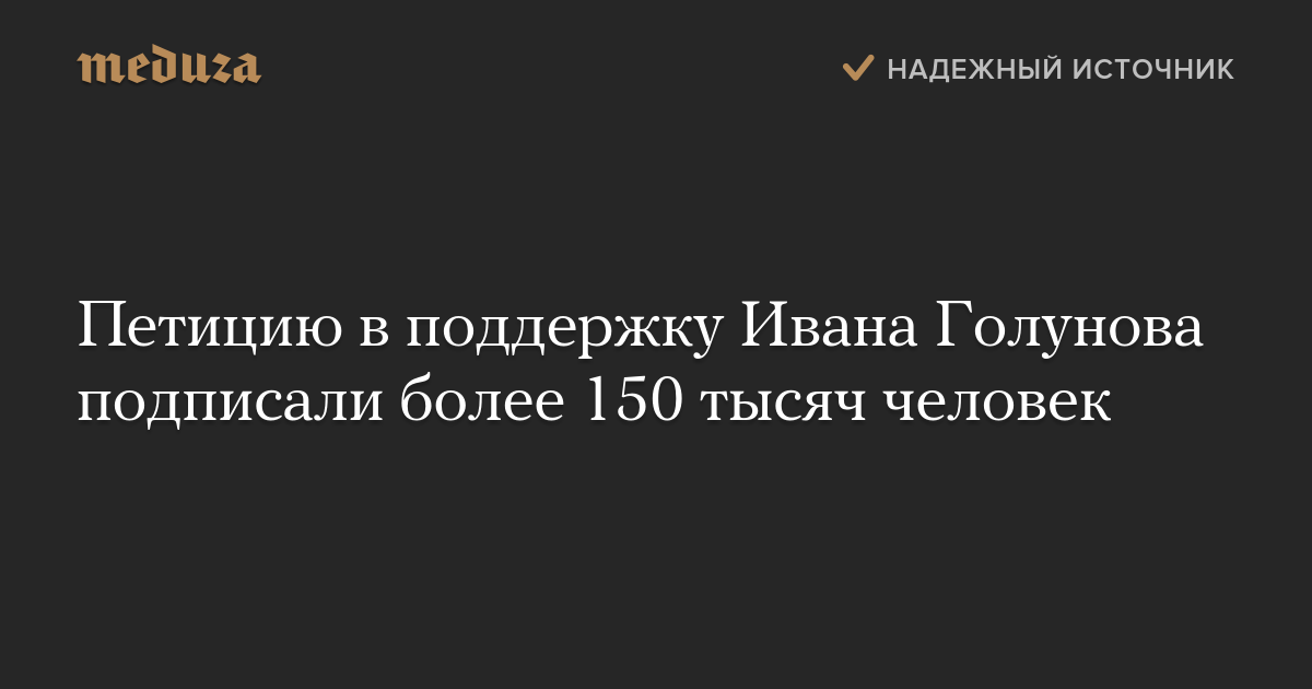 Петицию в поддержку журналиста «Медузы» Ивана Голунова на сайте Change.org подписали более 150 тысяч человек.