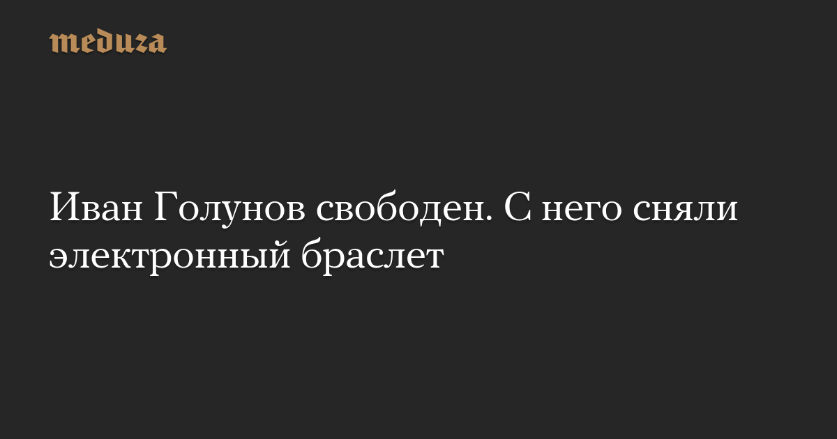 Со спецкора «Медузы» Ивана Голунова, которого обвиняли в попытке сбыта наркотиков, сняли электронный браслет, который использовался для контроля за его передвижениями во время домашнего ареста.