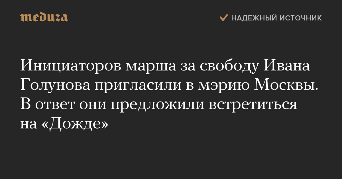 Инициаторов марша за свободу Ивана Голунова пригласили в мэрию Москвы. В ответ они предложили встретиться на «Дожде»