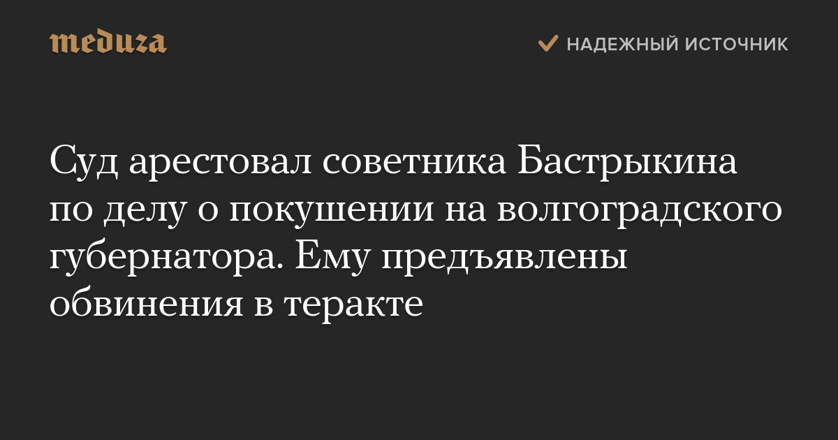 Суд арестовал советника Бастрыкина по делу о покушении на волгоградского губернатора. Ему предъявлены обвинения в теракте