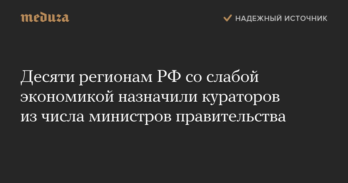 Десяти регионам РФ со слабой экономикой назначили кураторов из числа министров правительства
