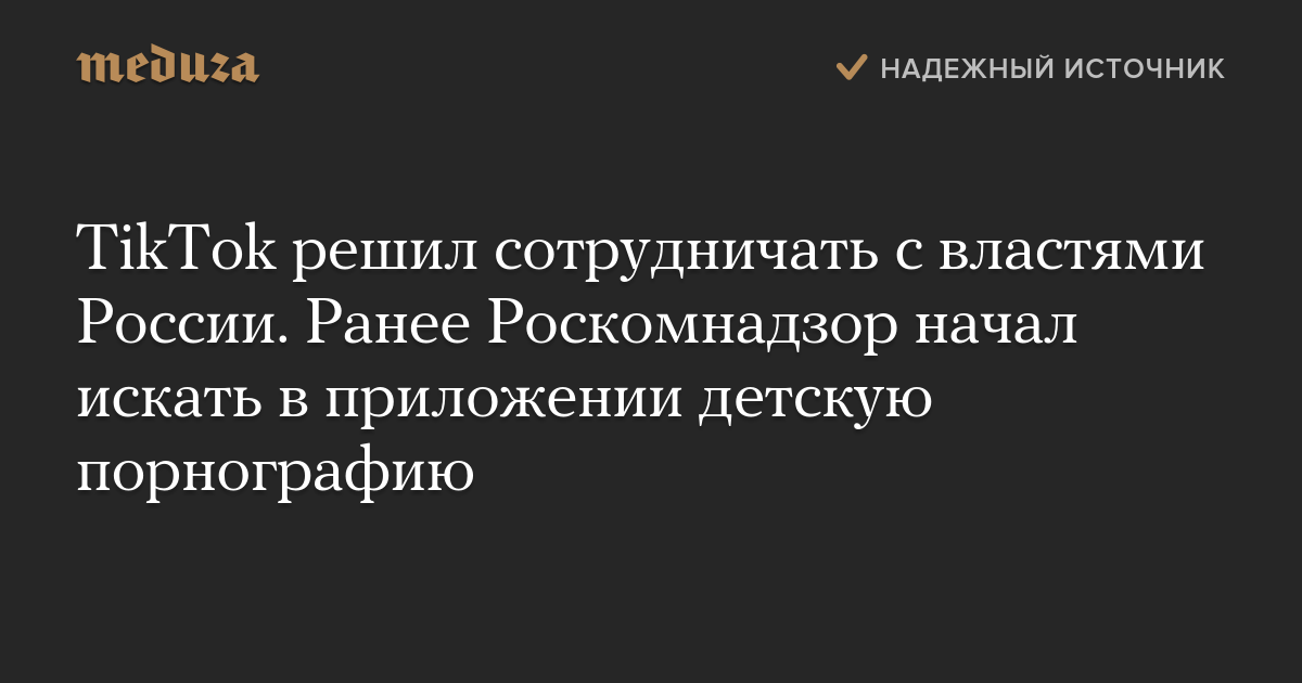TikTok решил сотрудничать с властями России. Ранее Роскомнадзор начал искать в приложении детскую порнографию