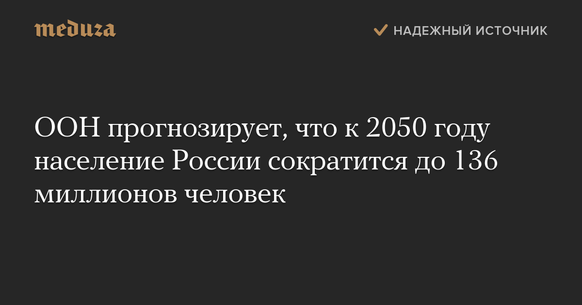 ООН прогнозирует, что к 2050 году население России сократится до 136 миллионов человек