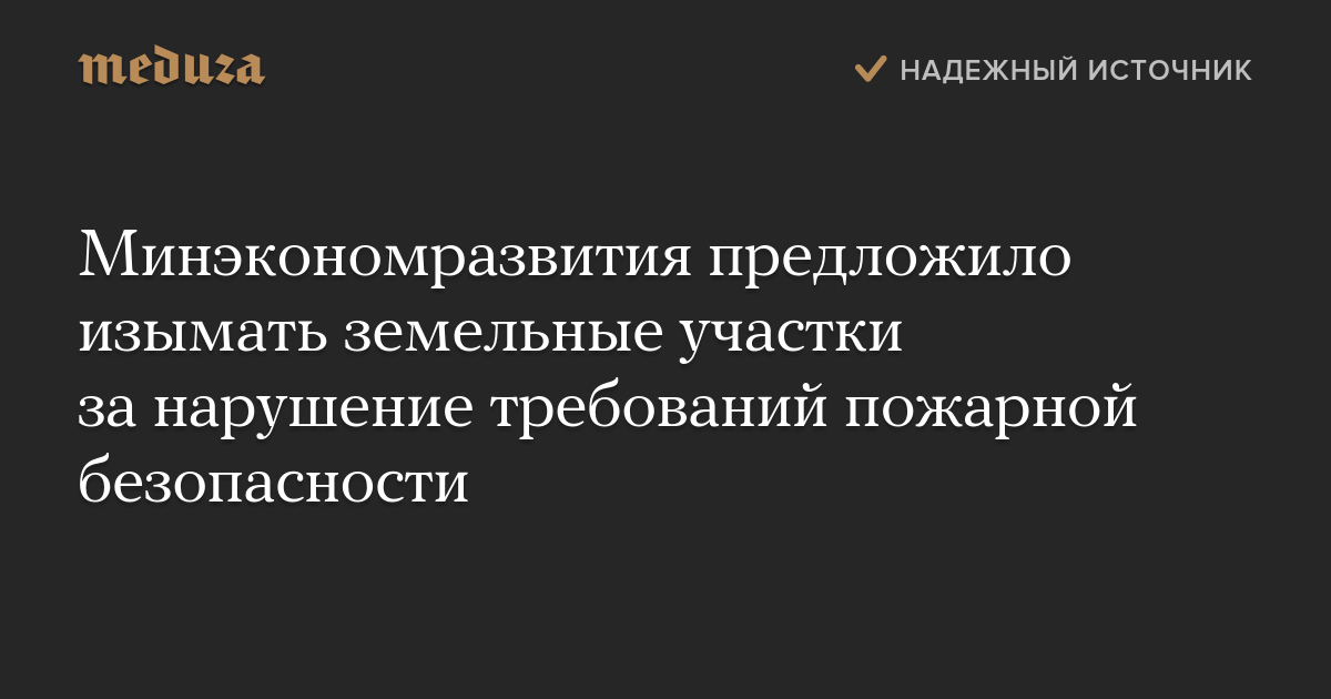 Минэкономразвития предложило изымать земельные участки за нарушение требований пожарной безопасности