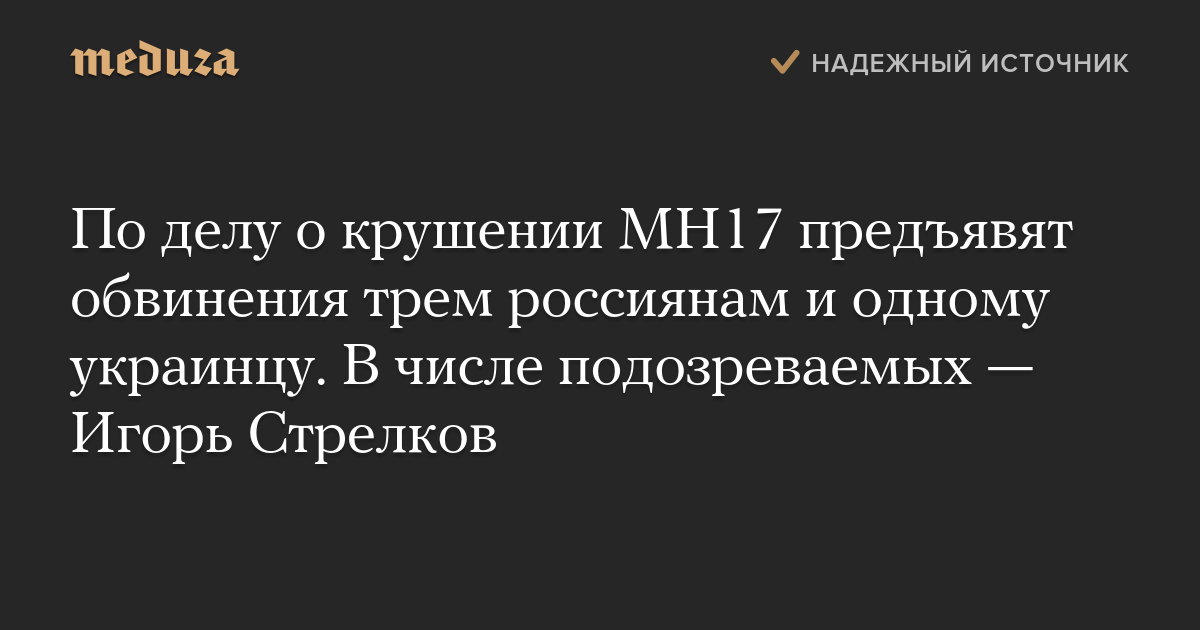 По делу о крушении MH17 предъявят обвинения трем россиянам и одному украинцу. В числе подозреваемых — Игорь Стрелков