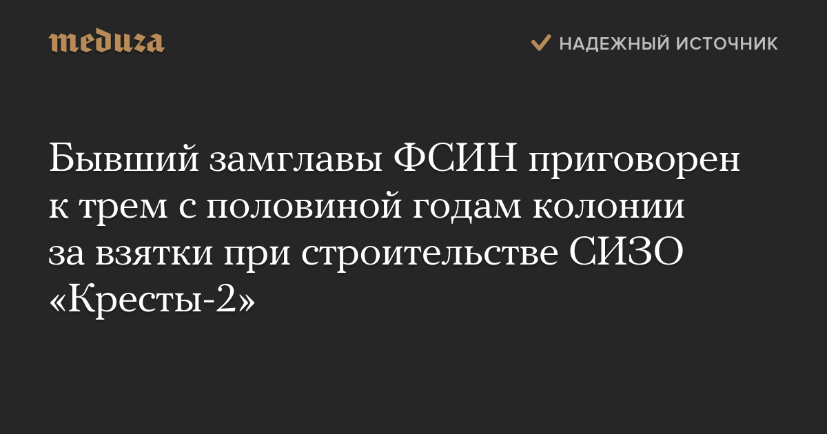 Бывший замглавы ФСИН приговорен к трем с половиной годам колонии за взятки при строительстве СИЗО «Кресты-2»