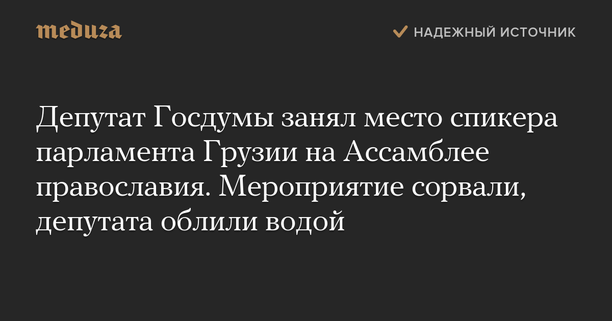 Депутат Госдумы занял место спикера парламента Грузии на Ассамблее православия. Мероприятие сорвали, депутата облили водой