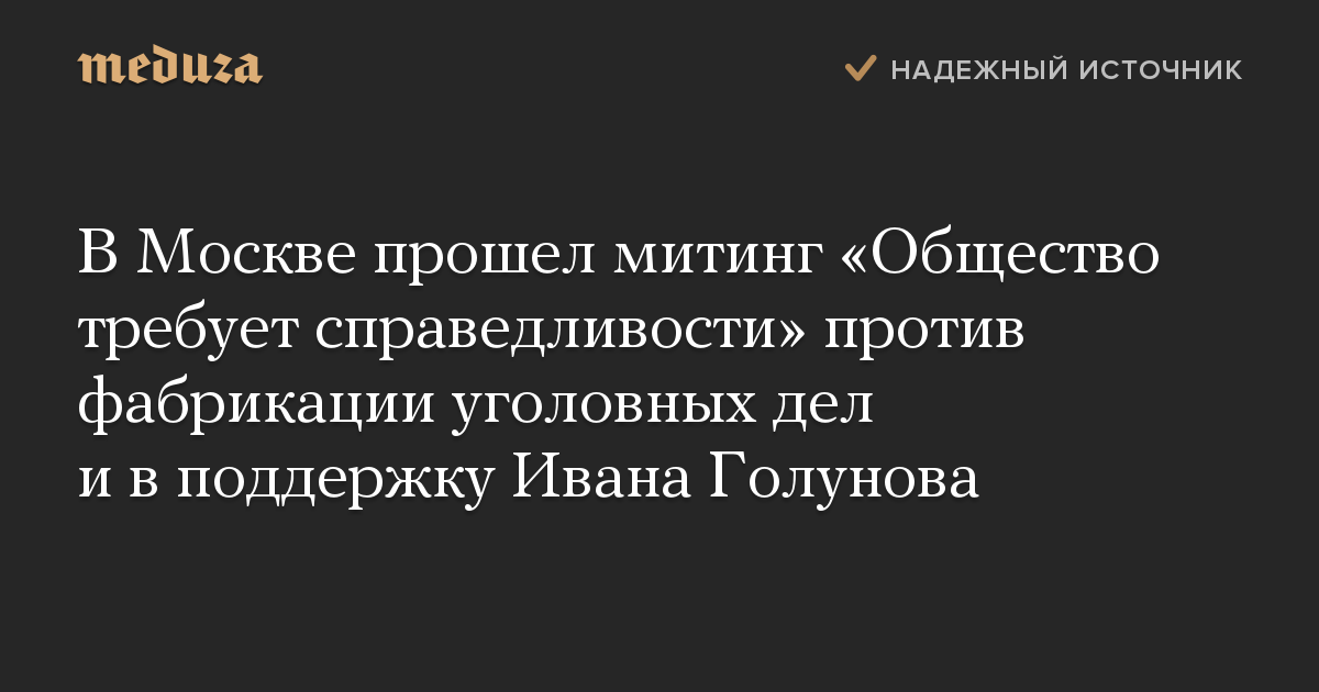 В Москве прошел митинг «Общество требует справедливости» против фабрикации уголовных дел и в поддержку Ивана Голунова