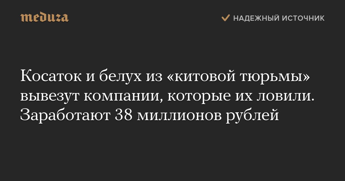 Всероссийский научно-исследовательский институт рыбного хозяйства и океанографии (ВНИРО) заключил контракты на вывоз из «китовой тюрьмы» двух косаток и восьми белух с компаниями, которые отлавливали этих животных. Об этом пишут «Открытые медиа» со ссылкой на данные госзакупок.