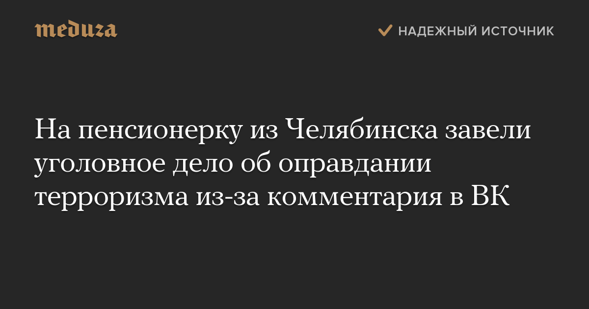 На пенсионерку из Челябинска завели уголовное дело об оправдании терроризма из-за комментария в ВК