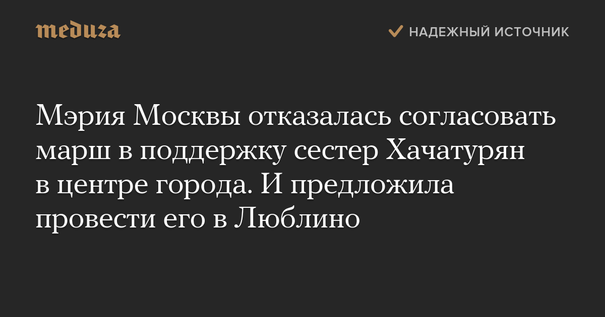 Мэрия Москвы отказалась согласовать марш в поддержку сестер Хачатурян в центре города. И предложила провести его в Люблино