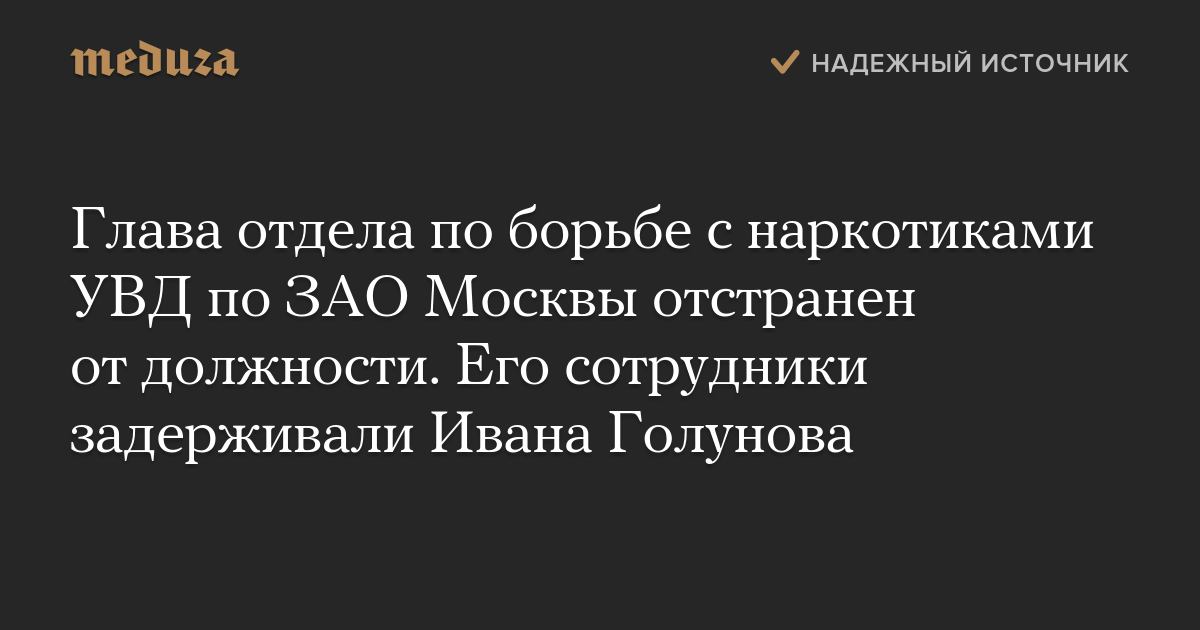 Глава отдела по борьбе с наркотиками УВД по ЗАО Москвы отстранен от должности. Его сотрудники задерживали Ивана Голунова