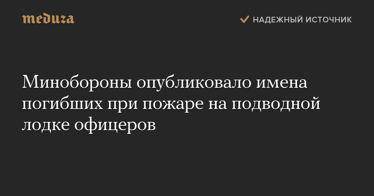 Минобороны опубликовало имена погибших при пожаре на подводной лодке офицеров