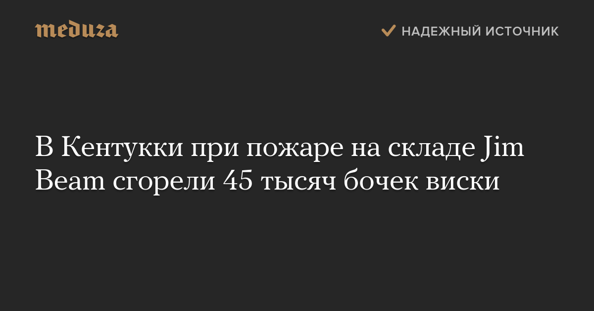 В американском штате Кентукки произошел пожар на складе производителя алкогольных напитков Jim Beam. В результате инцидента оказались уничтожены 45 тысяч бочек виски.