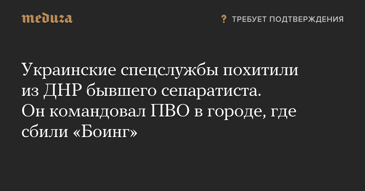 Украинские спецслужбы похитили из ДНР бывшего сепаратиста. Он командовал ПВО в городе, где сбили «Боинг»