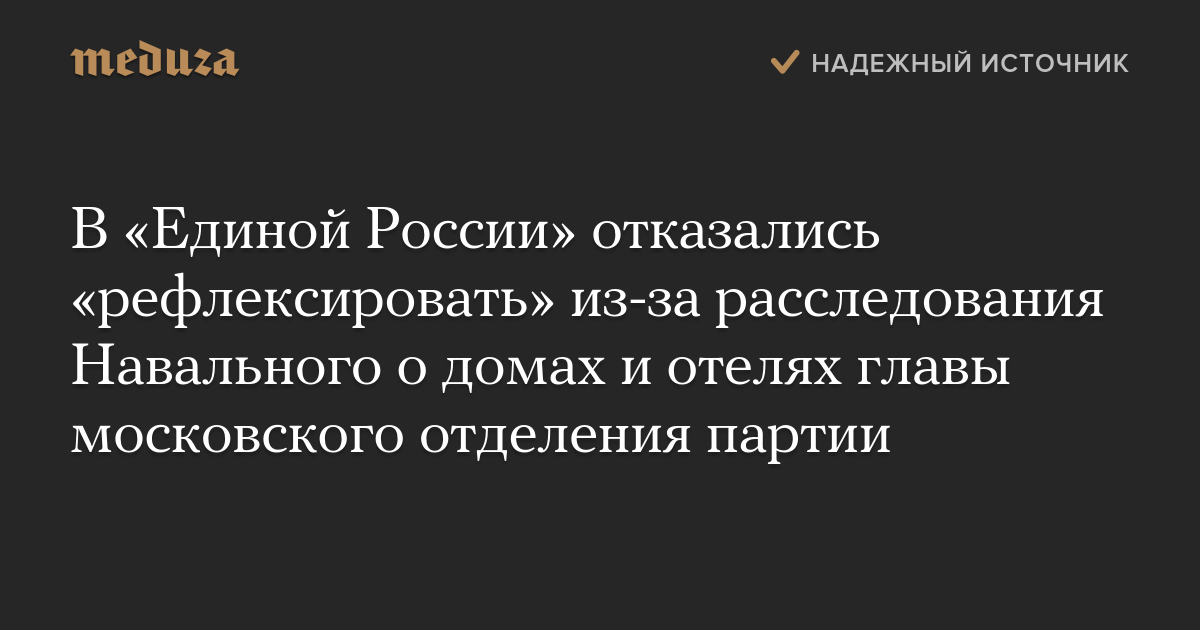 В «Единой России» отказались «рефлексировать» из-за расследования Навального о домах и отелях главы московского отделения партии