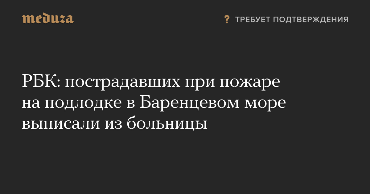 РБК: пострадавших при пожаре на подлодке в Баренцевом море выписали из больницы