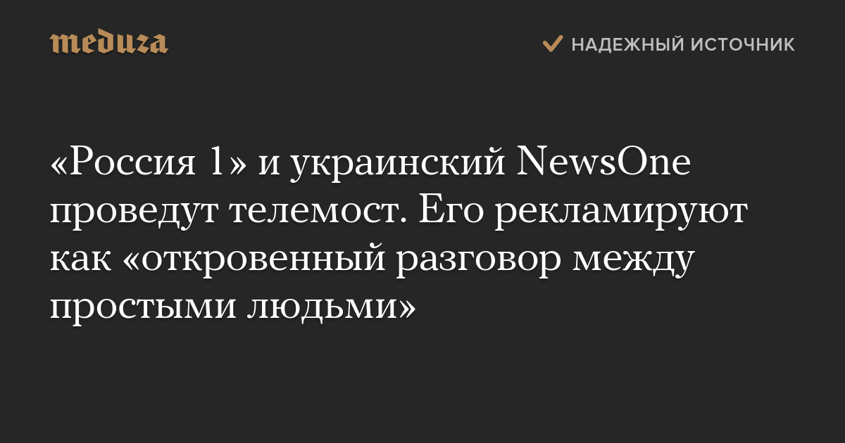 «Россия 1» и украинский NewsOne проведут телемост. Его рекламируют как «откровенный разговор между простыми людьми»