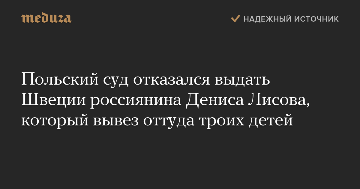 Польский суд отказался выдать Швеции россиянина Дениса Лисова, который вывез оттуда троих детей